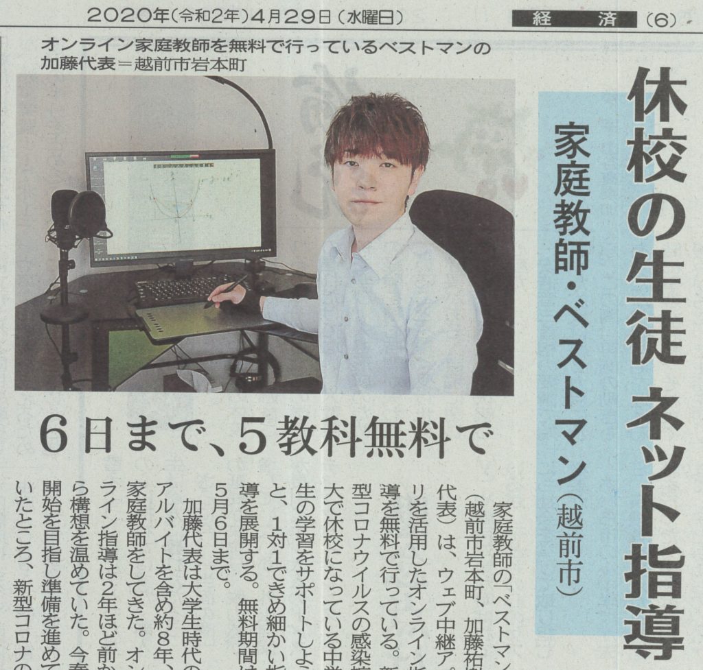 臨時休校の間、もちろん塾や、家庭教師をはじめとした対面型の学習支援サービス業も臨時休業を余儀なくされました。